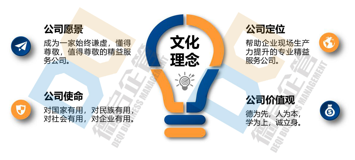 ——企业现场管理提升助力者徳启企管秉承着系统化、全方位、一站式解决企业问题的宗旨,形成以业绩为导向,真正落地生根的实战、实用、实效的精益生产转型咨询服务模式。